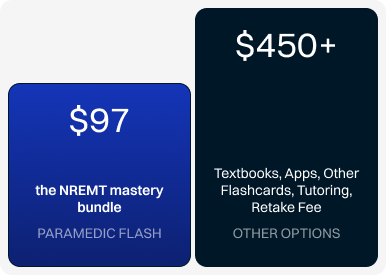 According to surveys of 1,000+ students, most spend $150+ on textbooks, $89 on other flashcard sets, $47 on study apps, and $197 on NREMT prep courses—only to fail their first attempt anyway.