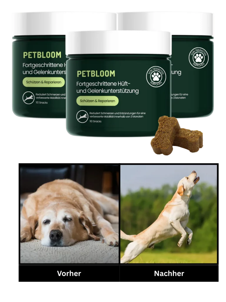 Kein Wunder, dass Tausende Hundebesitzer PetBloom vertrauen – weil sie sehen, wie ihre Hunde sich erholen, schmerzfrei werden und wieder voller Energie durchs Leben gehen.